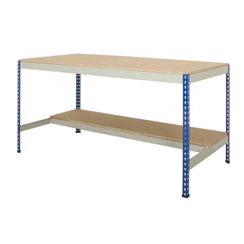 Easy to construct boltless workbenches complete with 18mm chipboard worktop & half undershelf. 300kg capacity per level.